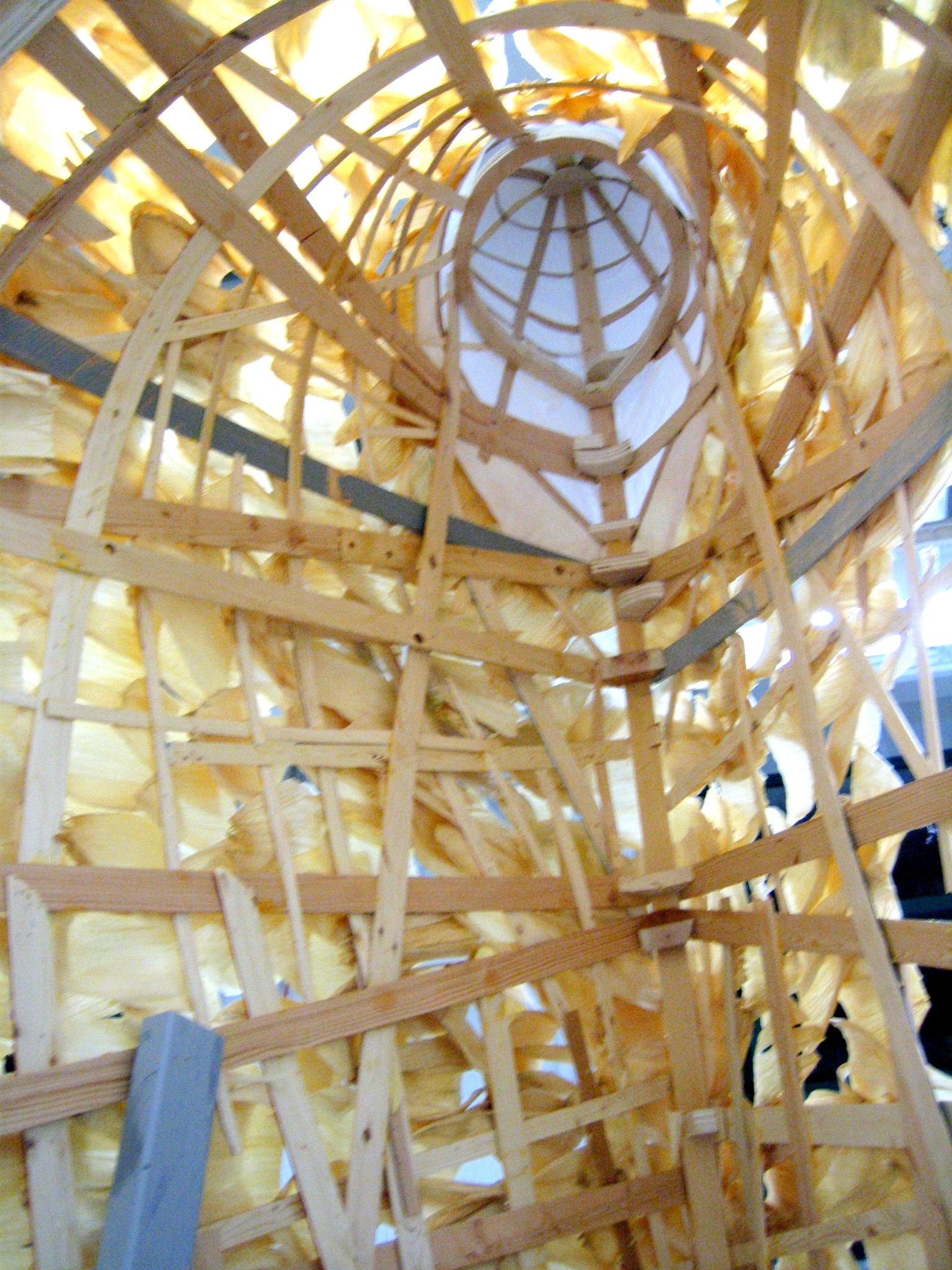 Interior view of "Genie Bottle" with corn husks, looking up