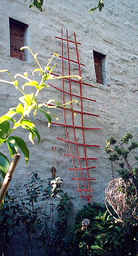 "Two Cones" wider view (red paint is part of next installation)